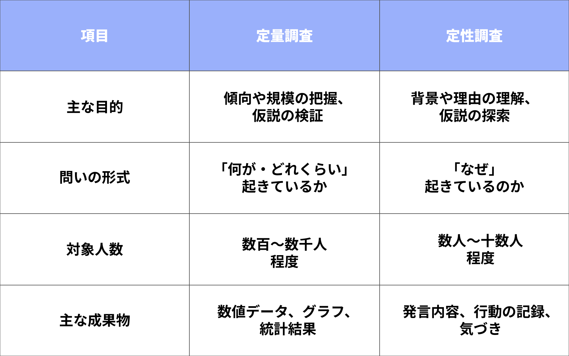 3. 定量調査と定性調査の主な違い